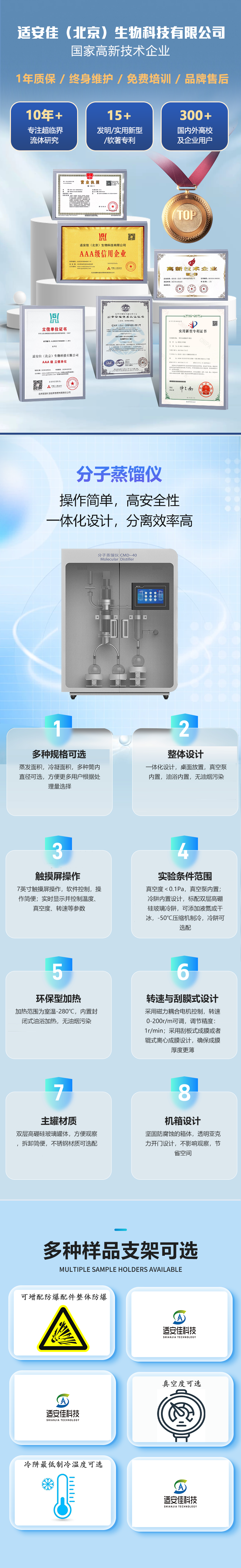 0.02m2,,冷凝面積:0.03m2,,50~500ml樣品量即可實現分離,最大程度減少樣品需要量
